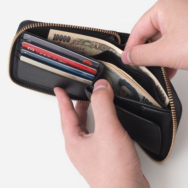 お札入れには仕切りがあるため、レシートやポイントカード等の収納に便利です。