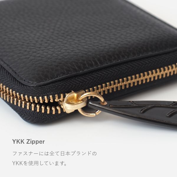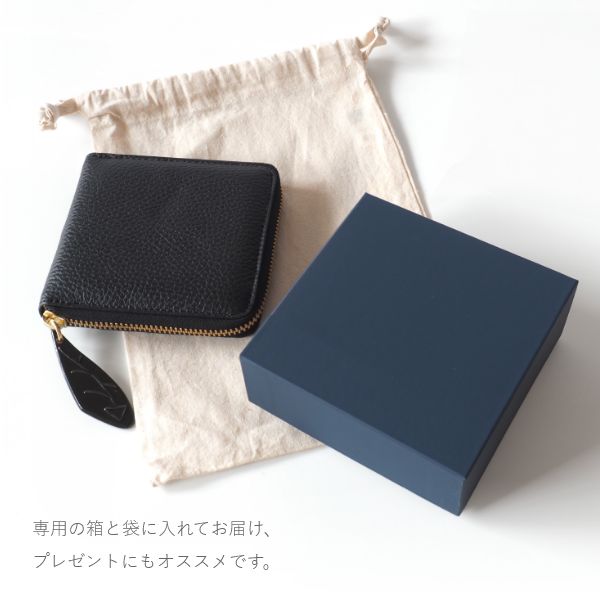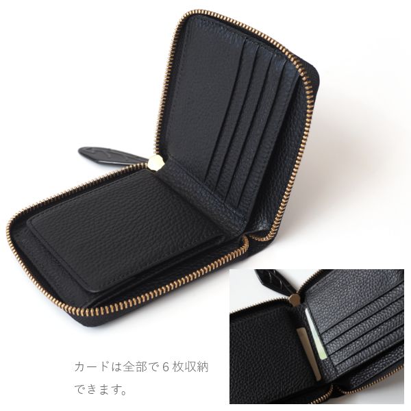 この2つ折り財布は、光沢とシボ感が美しい本革を使用し日本のタンナーが時間をかけて丁寧に仕上げています。