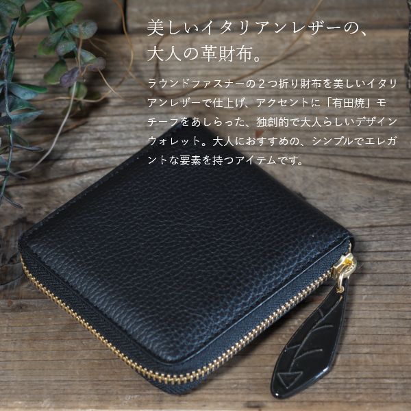 イタリアンレザー×有田焼 2つ折り財布 - Sarah μ(サラミュー)