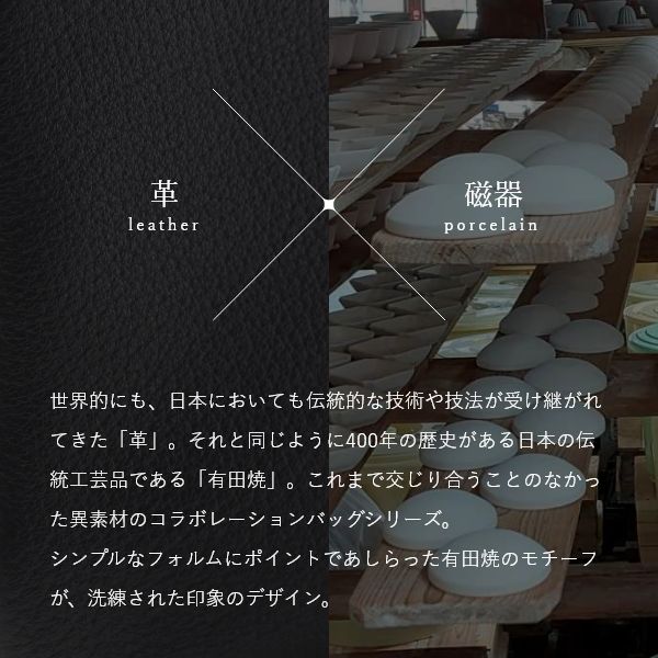 異素材のコラボレーションシリーズは、シンプルなフォルムに有田焼のモチーフを巧みに取り入れ、洗練された印象のデザインが特徴です。