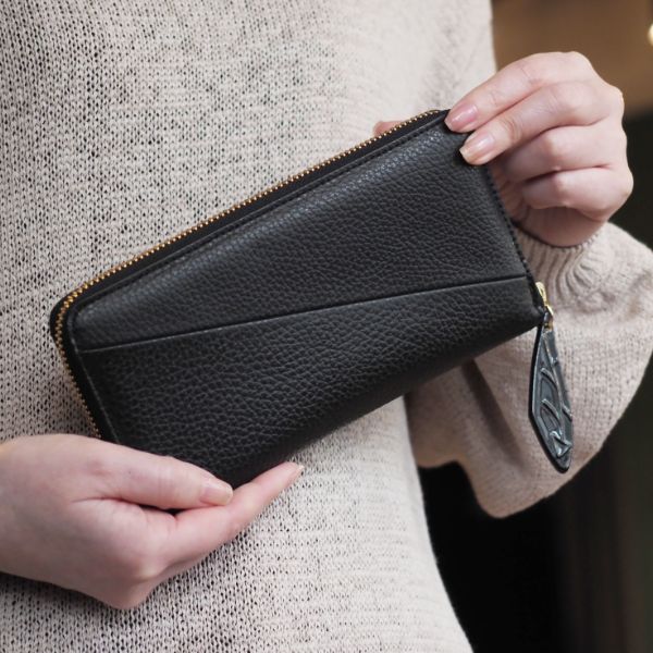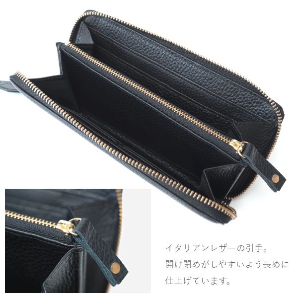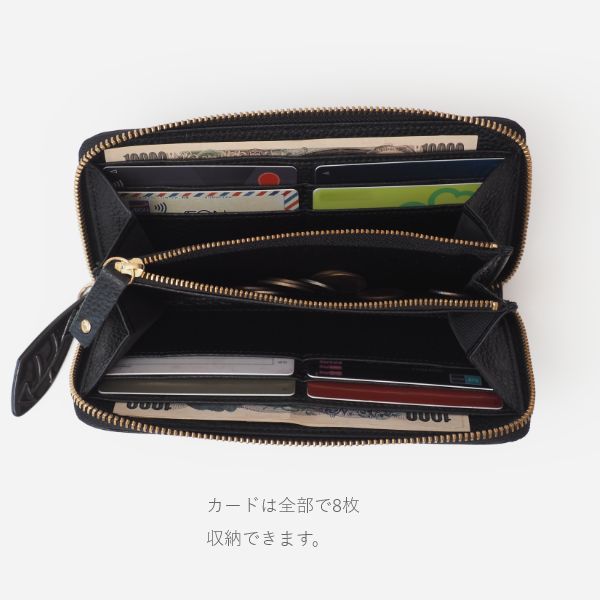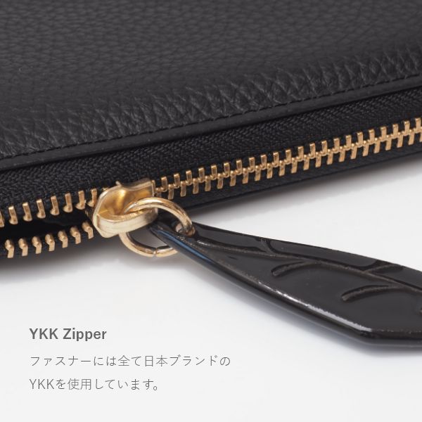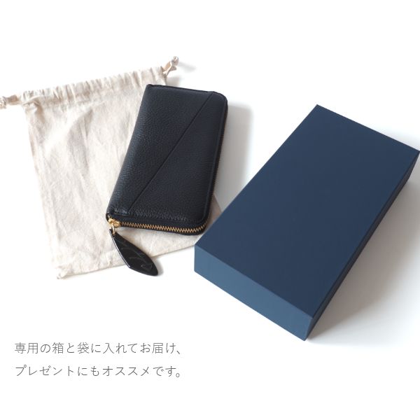 この長財布は、光沢とシボ感が美しい本革を使用し、日本のタンナーが時間をかけて丁寧に仕上げています。