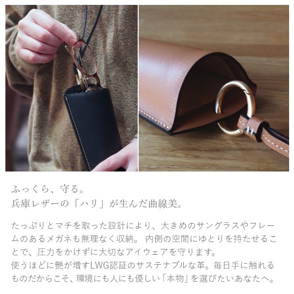 たっぷりとマチを取った設計により、大きめのサングラスやフレームのあるメガネも無理なく収納。 内側の空間にゆとりを持たせることで、圧力をかけずに大切なアイウェアを守ります。