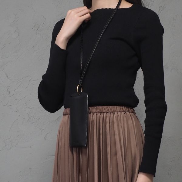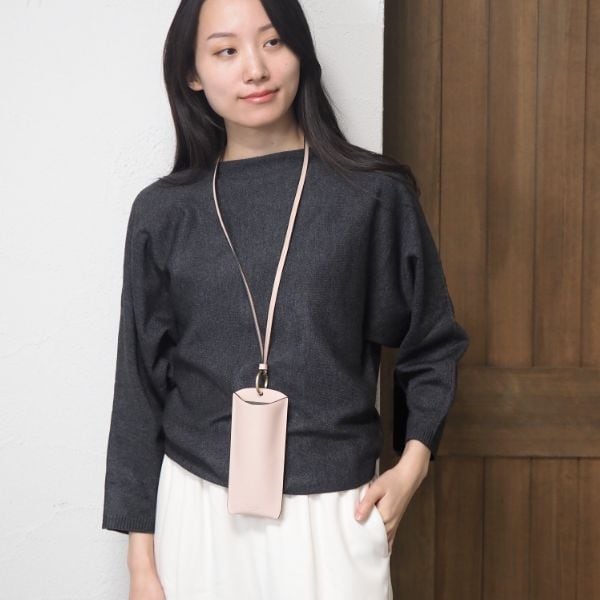 淡く優しいパウダーピンクを黒のラインがキリッと引き締め、「甘さ」を「大人の上品さ」へと変換しています。 首から下げることで顔周りに明るい色が入り、表情を柔らかく見せてくれるのも嬉しいポイント。 「可愛い」だけじゃない。大人の余裕と優しさを纏う、特別なアクセサリーです。